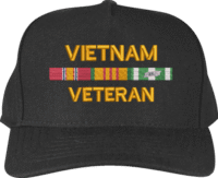 Vets 4 Vets proudly presents the Vietnam Veteran War Conflict Ribbon Cap, expertly crafted to honor your service. Each cap is skillfully embroidered at our Scottsboro, AL facility by craftsmen dedicated to quality and patriotism.